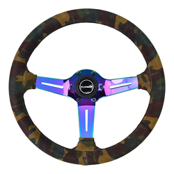 Alta Qualidade 350MM Camurça Couro Camuflagem Galvanizado Placa Profunda Bracket Racing Car Modificado Volante